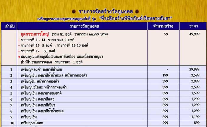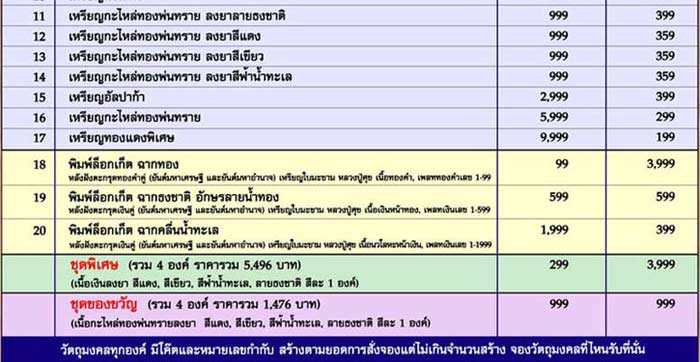 ชุดกรรมการ ล๊อกเก็ตทองคำ ชุดพิเศษ และชุด ของขวัญ ต้องรีบแล้วครับ ลูกย่อยยังมีไม่มีปัญหา พอมีครับ พระออก เดือน กุมภาฯ นะครับ บัวชัวร์เสร็จ ยัง ไม่ออก พระ หลัก ก็จะหมดแล้วครับ เกจิครบถ้วน พิธีดี เหรียญสวย สนใจ จอง ตัวแทนยะลา และจังหวัดใกล้เคียง หรือ อยู่ที่อื่นก็ได้ เหรียญออก ผมส่งให้ทาง ไปรษณีย์ครับ พจนันท์ โทร 0840680188 บัญชี ธ. กสิกรไทย 2562591381 สาขายะลา สนใจ โดยเฉพาะ 4 ชุดหลัก ต้องรีบแล้วนะครับ