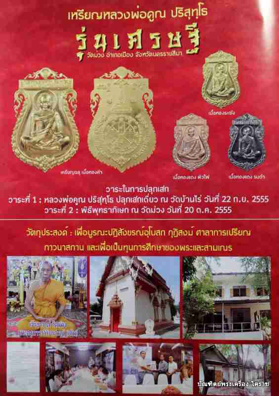ปลุกเสกวาระแรก ๒๒ ก.ย. ๒๕๕๕ วาระสองที่วัดม่วง ๒๐ ต.ค. ๒๕๕๕ รับพระประมาณ วันที่ ๑ พ.ย.๒๕๕๕ เป็นต้นไปครับ