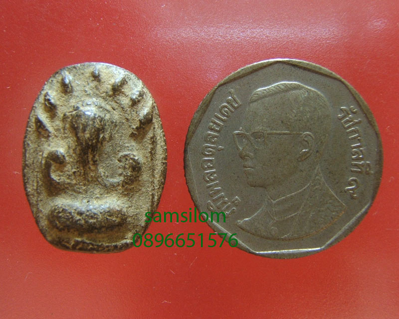 องค์พระมีไขขึ้นเต็มหน้าหลัง เนื้อออกสีเหลืองดำ พิมพ์ทรงคล้ายกับพระปิดตาแต่มีนาคปรกด้วย