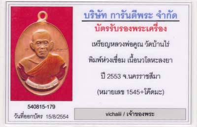 หลวงพ่อคูณ เหรียญห่วงเชื่อมรุ่นแรก นวะลงยา หมายเลข 1545 โค๊ดมะ มีน้อย สวยมากๆ กล่องเดิม พร้อมบัตร