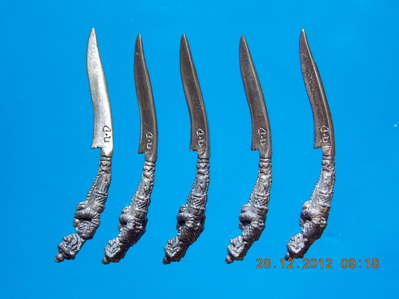 มีดขุดกรรมการ รายการที่3 แบบห้อยคอ ขนาด3.5ซม.(รวมยาวทั้งเล่ม) มี5เนื้อ เงิน สำริดเงิน นวะ ทองทิพย์ ทองระฆัง บูชา1000บาท จองวันนี้ถึง30เม.ย.56มีแถมมีดขนาดเดียวกันนี้ เนื้อสำริดเงิน ทองทิพย์ ทองระฆัง อย่างละ1เล่ม
