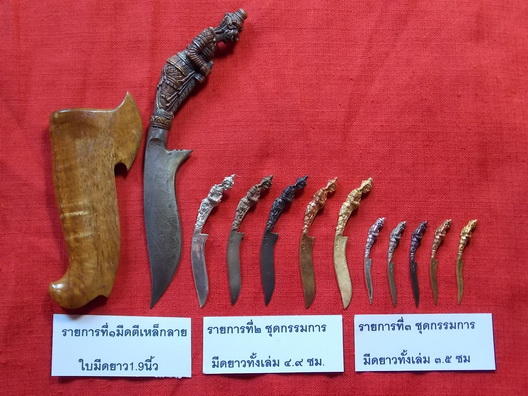 มีดชุดกรรมการ รายการที่2 ขนาด4.9ซม. (รวมทั้งเล่ม)แบบห้อยคอ มี5เนื้อ เงิน สำริดเงิน นวะ ทองทิพย์ ทองระฆัง บูชา2500บาท จองวันนี้ถึง30เม.ย.56มีแถมมีดขนาดเดียวกันนี้ เนื้อสำริดเงิน ทองทิพย์ ทองระฆัง อย่างละ1เล่ม