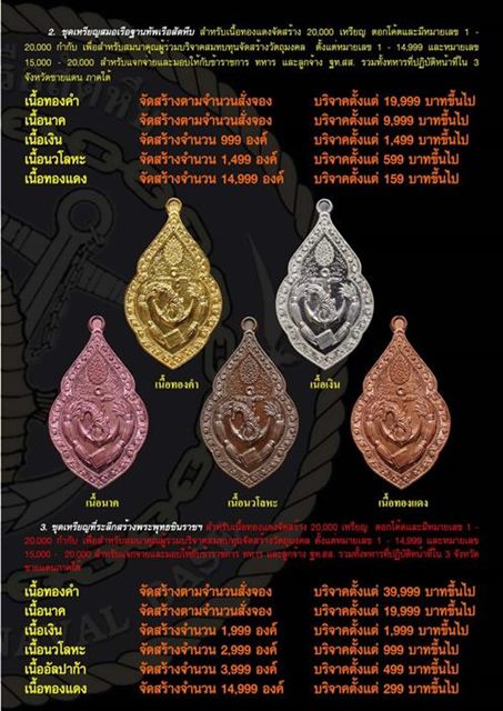 เนื้อนวะโลหะ จัดสร้างจำนวน ๒,๙๙๙ เหรียญ ราคาจอง ๙๙๙ บาท ๑๐๐ เหรียญ