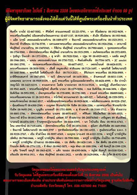 วัตถุมงคลตอกโค๊ต หมายเลขกำกับทุกประเภท ทุกองค์ รับวัตถุมงคลได้ตั้งแต่ วันที่ ๑๕ สิงหาคม เป็นต้นไป