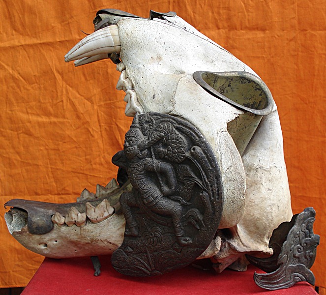 หัวเสือเก่าอายุมากกว่า50ปีขึ้นไปครับสภาพเขี้ยวเสือหายไปเกือบหมดเพราะเจ้าของเดิมไปดุหมอดูทักว่าเป็นของไม่ดีอย่าเอาไว้ในบ้านผลก็อย่างที่เห็นครับเขี้ยวโดนถอดไปเกือบหมดปากยังดีที่เจ้าของเดิมตั้งสติได้เลยนำเข้ามาไว้ในบ้านเหมือนเดิมและก็ไม่มีอะไรที่ไม่ดีเกิดขึ้นกับเจ้าของบ้านเลยครับ ทรงเครืองของหัวเสือสามารถถอดได้หมดทุกชิ้นส่วนครับ(ถอดประกอบได้สุดยอดมากครับ) โทรสอบถามที่087-701-7288