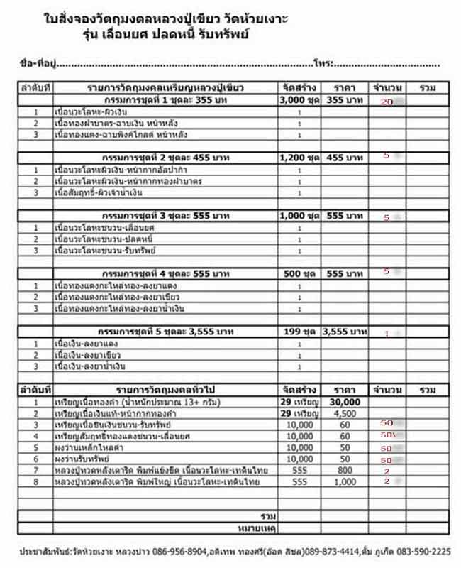 เปิดจอง รุ่น เลื่อนยศ ปลดหนี้ รับทรัพย์ พ่อท่านเขียว วัดห้วยเงาะ