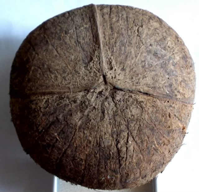 กะลาตาเดียว แห้งสนิทแล้วครับ ทิ้งไว้ประมาณ 2 ปีกว่า ๆ แล้วครับ เนื้อมะพร้าวข้างในไม่มีแล้วเพราะปล่อยทิ้งให้แห้งเองตามธรรมชาตครับ ไม่ได้ขัดแต่งแต่ประการใด