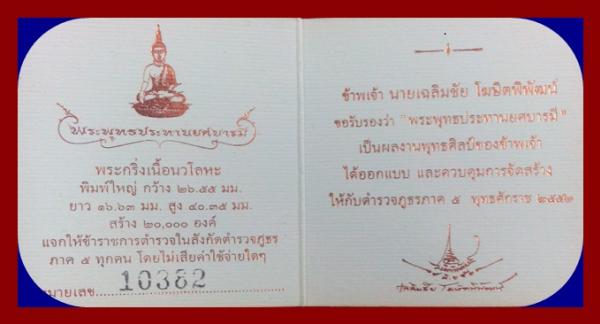 หัวข้อ: พระพุทธประธานยศบารมี เนื้อนวะ พร้อมกล่องและหมายเลข