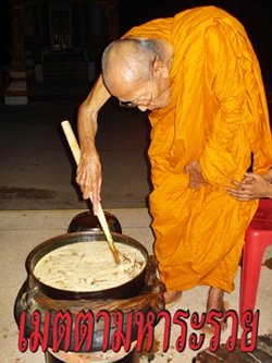 - หลวงปู่คำบุ มีความประสงค์จะหาทุนทรัพย์เพื่อการก่อสร้างภายในวัดให้เสร็จ จึงให้คณะศิษย์ใกล้ชิดจัดสร้างวัตถุมงคล รุ่นเมตตามะหาระรวย และได้เมตตาอธิษฐานจิตปลุกเสก 2 วาระ โดยเน้นหนักไปทางเมตตา โชคลาภ ค้าขาย