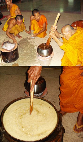 หลวงปู่ได้เมตตาตั้งใจหุงสีผึ้งว่านมหาเสน่ห์ มีว่านดอกว่านดอกทองและว่านสาวหลง รวมทั้งหัวว่าน และว่านทางโชคลาภจำนวนมากด้วยตัวหลวงปู่เอง และหลวงปู่ยังเคี่่ยวน้ำมันว่านมหาเสน่ห์ดอกทอง มีทั้ง หัวว่าน ดอกว่านดอกทองตัวผู้ และตัวเมีย ทั้งของไทยและของเขมร และรากว่านสาวหลง ใบว่านสาวหลง และว่านที่ให้ผลทางโชคลาภเมตตามหานิยม และค้าขาย อีกจำนวนมาก เสกไปเคี่ยวไป จนสีผึ้ง และน้ำมันว่านขึ้นเป็นตัวจึงหยุดเคี่ยว (ยังมีเหตุการที่ไม่อาจมาบอกกล่าวใน)ที่นี้ได้