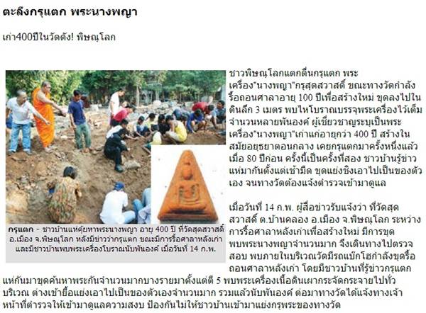 ได้อ่านข่าวจากในเน็ตน่ะค่ะ ว่ามีพระกรุนี้แตก