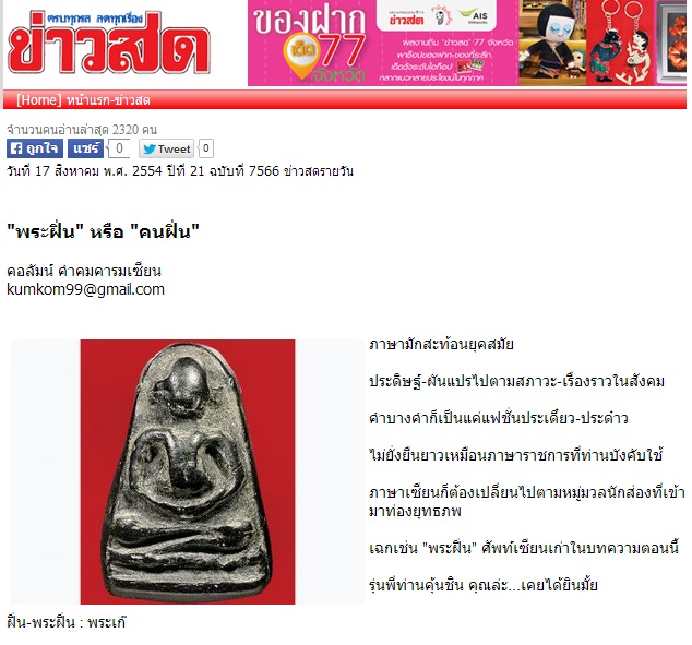 บทความจาก นสพ.ข่าวสด วันที่ 17 สิงหาคม พ.ศ. 2554 ปีที่ 21 ฉบับที่ 7566 ข่าวสดรายวัน