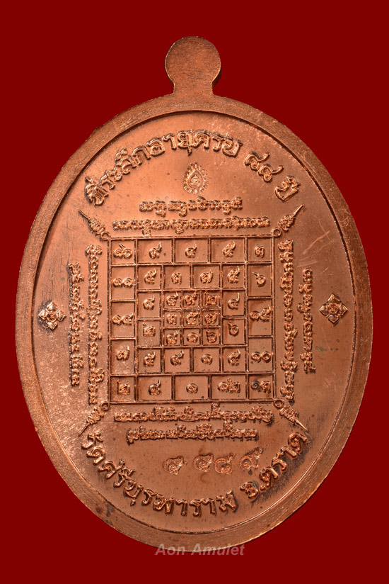 เหรียญเจริญพรบนเนื้อทองแดง รุ่น มงคลชีวิต 88 หลวงปู่บัว ถามโก พศ.2557 หมายเลข 4489