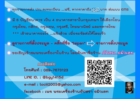 | ชื่อร้านค้า | อัปสรา อมิวเลท - (คลิ๊กที่นี่เพื่อดู ข้อมูลเกี่ยวกับร้านค้า) |
