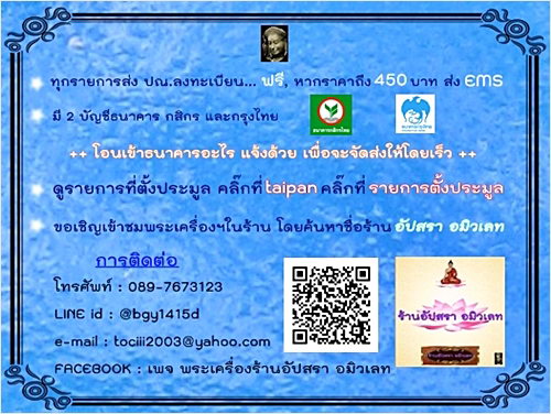 | ชื่อร้านค้า | อัปสรา อมิวเลท - (คลิ๊กที่นี่เพื่อดู ข้อมูลเกี่ยวกับร้านค้า) |