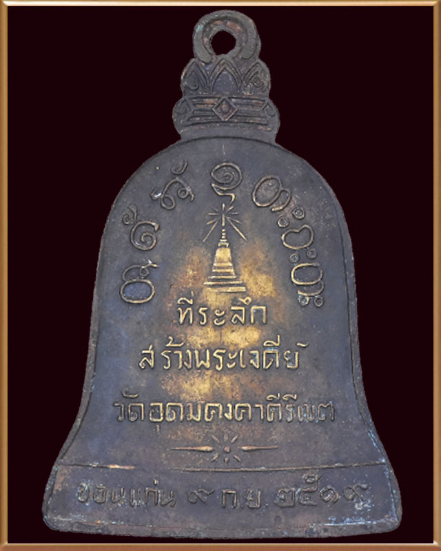 - เหรียญระฆังหลวงพ่อผาง วัดอุดมคงคาคีรีเขตต์ ปี ๒๕๑๙ ที่ระลึกสร้างพระเจดีย์