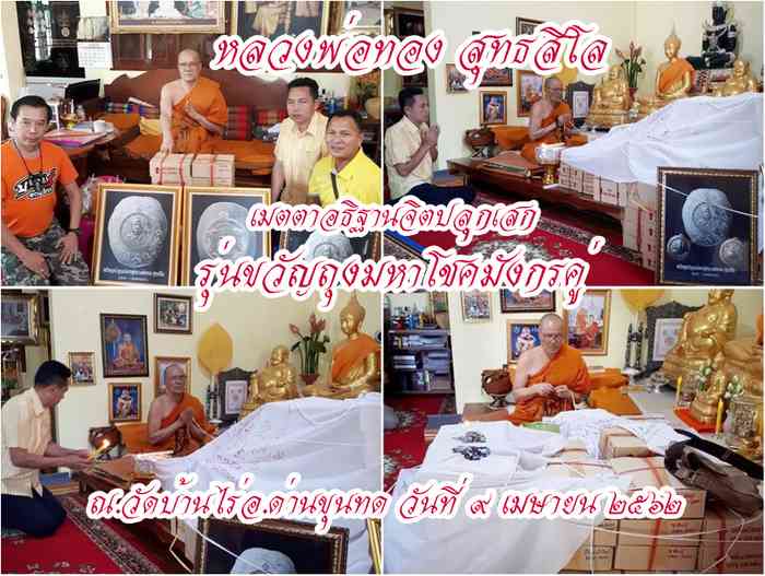 | เหรียญหลวงพ่อทอง รุ่นขวัญถุงมหาโชคมังกรคู๋ เนื้อเงินลงยาหน้าทองคำ หมายเลข 3 |