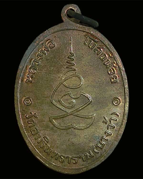 | เหรียญหลวงพ่อโบสถ์น้อย วัดอมรินทราราม ปี2537 เนื้อนวโลหะ สภาพเดิมๆ สวยสมบูรณ์ ไม่ผ่านการใช้งาน พร้อมกล่องเดิมจากวัด ลักษณะเป็นเหรียญรูปไข่ ด้านหน้าตรงกลางเป็นรูปจำลองหลวงพ่อโบสถ์น้อย มีอักขระขอม ภาษาบาลี โดยรอบ ด้านบนอ่านว่า สัง วิ ธา ปุ กะ ยะ ปะ ซึ่งเป็น "พระคาถาหัวใจพระอภิธรรมเจ็ดคัมภีร์" ด้านล่างอ่านว่า อะ สัง วิ สุ โล ปุ สะ พุ ภะ ซึ่งเป็น "พระคาถานวหรคุณ" คั่นกลางด้วยเครื่องหมาย ๏ ด้านหลังตรงกลางเป็น "ยันต์เฑาะว์สมาธิ" ด้านบนเป็นชื่อ "หลวงพ่อโบสถ์น้อย" ด้านล่างเป็นชื่อวัด "วัดมรินทราราม (บางว้า)" จัดพิธีพุทธาภิเษกในพระอุโบสถ โดยนิมนต์พระคณาจารย์นั่งปรก ดังนี้ พระสุเมธาธิบดี เจ้าอาวาสวัดมหาธาตุ เจ้าคณะกรุงเทพมหานคร กรรมการมหาเถรสมาคม (เป็นประธานจุดเทียนชัย) หลวงพ่อแพ (พระธรรมมุนี) วัดพิกุลทอง สิงห์บุรี หลวงพ่อวีระ (พระวิสุทธาธิบดี) วัดสุทัศเทพวราราม กรุงเทพฯ หลวงพ่อเที่ยง (พระเทพวิสุธิคุณ) วัดระฆังโฆสิตาราม กรุงเทพฯ หลวงพ่อเณร (พระราชพิพัฒน์โกศล) วัดศรีสุดาราม กรุงเทพฯ หลวงพ่อเกตุ( พระราชวิสุทธิคุณ) วัดเกาะหลัก ประจวบคีรีขันธ์ หลวงพ่อเปิ่น (พระอุดมประชานาถ) วัดบางพระ นครปฐม หลวงพ่อเฟื่อง (พระโสภณสมาธิคุณ) วัดเจ้ามูล กรุงเทพฯ หลวงพ่อหยอด (พระครูสุนทรธรรมกิจ) วัดแก้วเจริญ สมุทรสงคราม หลวงพ่อเก๋ (พระครูสุนันท์วิริยาภรณ์) วัดแม่น้ำ สมุทรสงคราม หลวงพ่อสนิท (พระครูวรเวทย์นิวิฐ) วัดลำบัวลอย นครนายก หลวงพ่อฉอ้อน (พระครูอาทรธรรมโสภิต) วัดแหลมหิน ปราจีนบุรี หลวงปู่ผัน (พระเทพประสิทธิคุณ) วัดระฆังโฆสิตาราม กรุงเทพฯ หลวงพ่อระเบียบ (พระชินวงศ์พิพัฒน์) วัดชิโนรสาราม กรุงเทพฯ หลวงพ่อทอง (พระครูนนทสิทธิการ) วัดไทรน้อย นนทบุรี หลวงพ่อประสิทธิ์ (พระครูยุตธรรมสุนทร) วัดหนองจอก ประจวบคีรีขันธ์ หลวงพ่อยิด (พระครูนิยุตธรรมสุนทร) วัดหนองจอก ประจวบคีรีขันธ์ หลวงพ่อสุรินทร์ (พระครูปลัดสุรินทร์) วัดนครหลวง อยุธยา (เกร็ดความรู้...เล่าสู่กันฟังครับ) หลวงพ่อโบสถ์น้อย วัดอมรินทรารามวรวิหาร สิ่งศักดิ์สิทธิ์คู่ชาวธนบุรี วัดอมรินทรารามวรวิหาร หรือเดิมชื่อ วัดบางว้าน้อย ติดกับสถานีรถไฟบางกอกน้อย และโรงพยาบาลศิริราช ในสมัยกรุงธนบุรี สมเด็จพระเจ้าตากสินมหาราช โปรดเกล้าฯ ให้บูรณปฏิสังขรณ์ แล้วสถาปนาให้เป็นพระอารามหลวง ต่อมาในสมัยรัชกาลที่ 1 กรมพระราชวังหลังได้ทรงสถาปนาวัดนี้ขึ้นใหม่ โดยการสร้างพระอุโบสถ พระระเบียง วิหาร กำแพงแก้ว หอระฆัง หอไตร ศาลาการเปรียญ กุฏิ และถนนในพระอาราม พร้อมทั้งได้พระราชทานนามใหม่ว่า "วัดอมรินทราราม" คู่กับ 