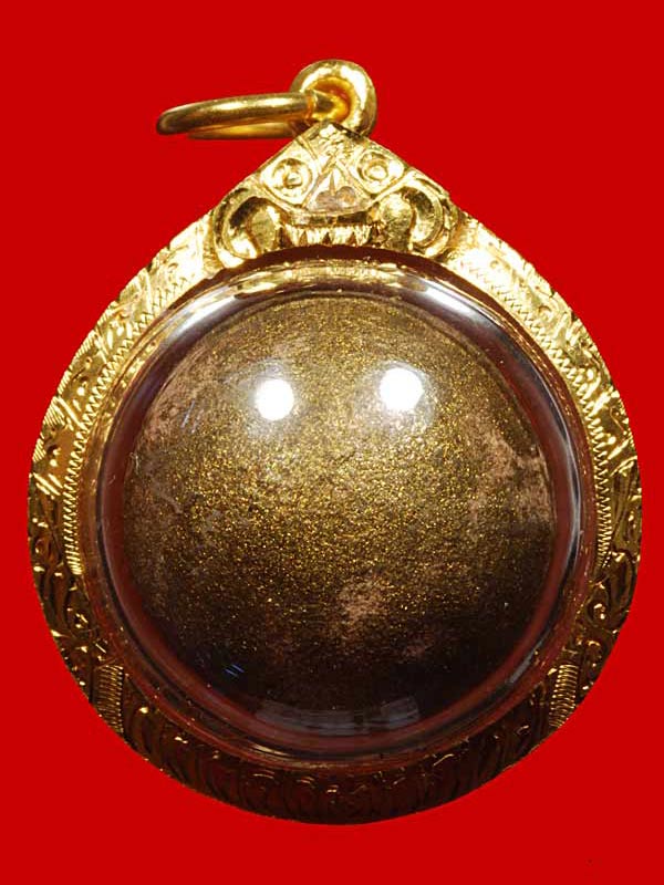 (13) ลูกอมผงพรายกุมาร เนื้อชมพู บรอนซ์น้ำมัน ขนาด1.5ซม. เลี่ยมทองงามๆพร้อมบูชา
