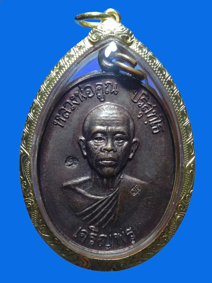 (8) ลพ.คูณ พิมพ์เจริญพรล่างครึ่งองค์ เนื้อทองแดง ปี36 (โค๊ดพิเศษ) บล๊อคทองคำหน้าแก่ เลี่ยมทอง+บัตร
