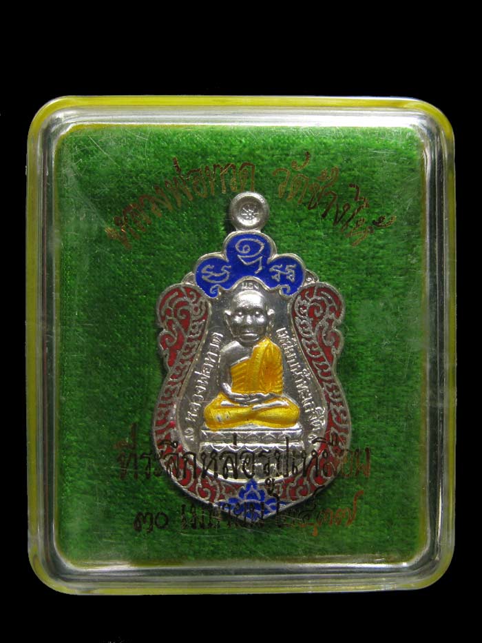 เหรียญ ลป.ทวดหัวโต รุ่นสร้างวิหาร ปี 37 เนื้อเงินลงยาสีแดง 4 โค๊ต (แจกกรรมการ)