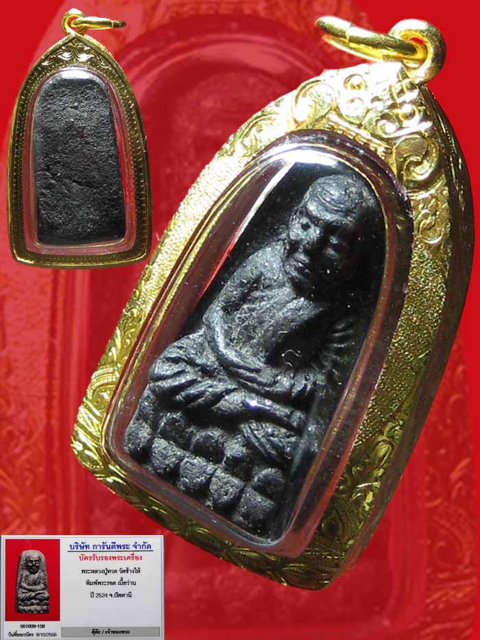 หลวงปู่ทวด เนื้อว่าน ปี 24 พิมพ์พระรอด เลี่ยมทอง พร้อมบัตร