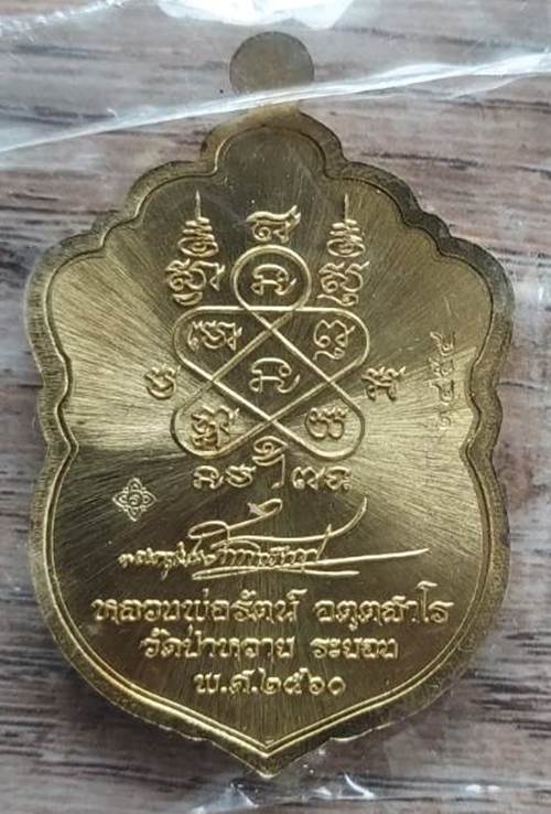 เหรียญเสมาใหญ่ รุ่น1 หลวงพ่อรัตน์ วัดป่าหวาย จ.ระยอง เนื้อทองฝาบาตรลงยา