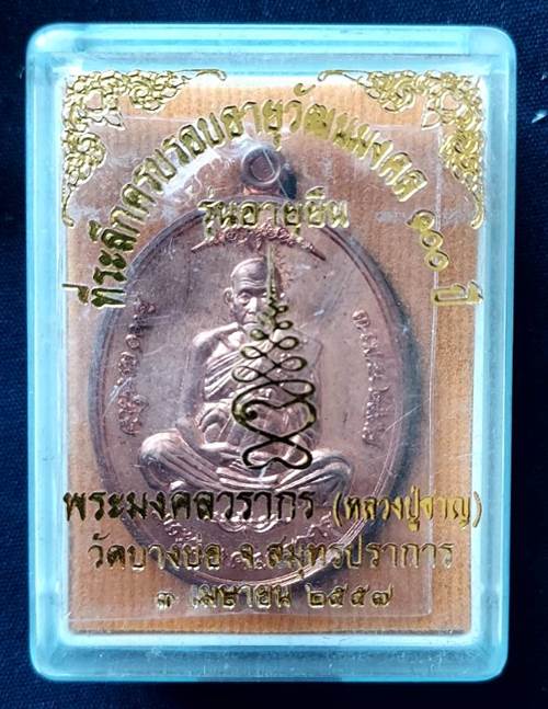 เหรียญ รุ่นอายุยืน หลวงพ่อชาญ วัดบางบ่อ สมุทรปราการ วาระที่ระลึกครบรอบอายุวัฒนมงคล 100 ปี 2557