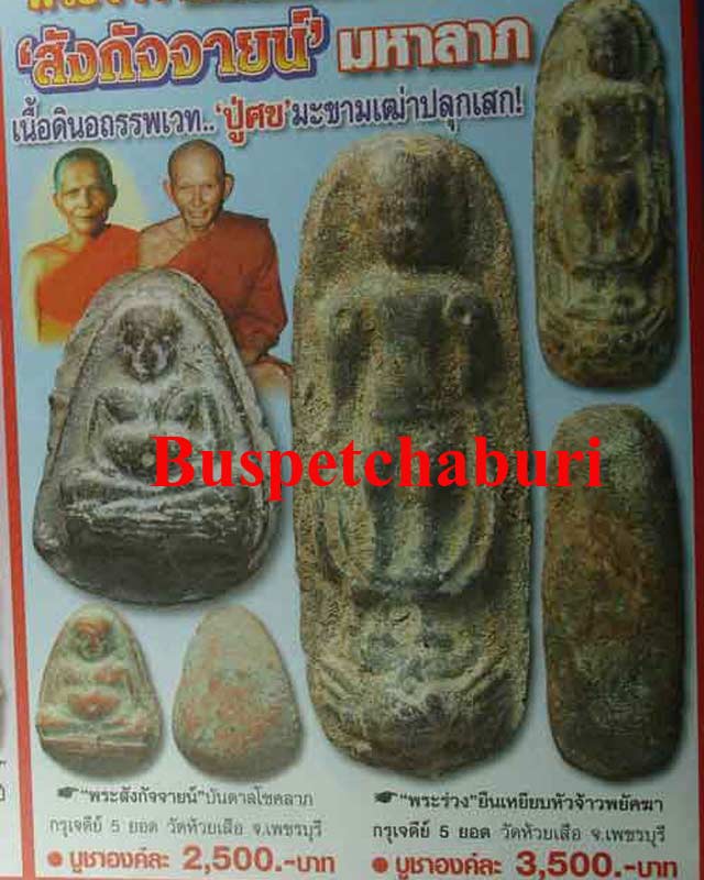 | พระร่วงยืนเหยียบหัวจ้าวพยัคฆาเนื้อดิน กรุเจดีย์5ยอดวัดห้วยเสือจ.เพชรบุรี ลป.ศุขวัดปากคลองมะขามเฒ่าปลุกเสก คราปกรุเดิมๆสวย พิมพ์ทรงตำหนิชัดเจน หน้าเสือชัดเจน พระพิมพ์นี้แถวเพชรบุรีมีประสบการณ์หลายท่าน ล่าสุดมีวัยรุ่นสายนักเลงโดนจ่อยิง แต่ปืนยิงไม่ออกถึง3ครั้ง ถ้าชอบก็เคาะกันเลยครับ ประวัติ กรุแตก!! ปี 2515 วัดห้วยเสือ จังหวัดเพชรบุรี เป็นวัดโบราณสมัยกรุงศรีอยุธยา ปัจจุบันอยู่ในเขต อ.บ้านลาด จ.เพชรบุรี ในอดีตถือเป็นถิ่นกบดานของเสือร้าย เป็น อำเภอคนดุ แต่ใจถึงไม่กลัวใคร วัดห้วยเสือได้ชำรุดทรุดโทรมไปตามกาลเวลา จนถึง พ.ศ. 2462 พระยานิติธรรมธาดา มหาดเล็กในพระบาทสมเด็จพระจุลจอมเกล้าเจ้าอยู่หัว รัชกาลที่ 5 ได้เข้ามาทำการบูรณะปฎิสังขรณ์ จนแล้วเสร็จในปี พ.ศ.2464 ท่านได้สร้างเจดีย์ใหญ่ ห้ายอดขึ้น เพื่อทำการบรรจุพระบรมสารีริกธาตุ ในการนี้ท่านได้สร้างพระเครื่องขึ้นเพื่อบรรจุภายในเจดีย์ ห้ายอดเพื่อเป็นพุทธบูชา ด้วยเหตุที่พระยานิติธรรมธาดา ท่านมีความนับถือใน หลวงปู่สุข วัดปากคลองมะขามเฒ่า พระที่ท่านสร้างขึ้นได้นำไปขอบารมีหลวงปู่สุข ปลุกเสก ก่อนนำมาบรรจุที่เจดีย์ห้ายอดทั้งหมด จากการสอบถามจากเซี่ยนเก่าเพชรบุรี นอกจากพิมพ์พระร่วงเหยียบหัวจ้าพยัคฆา พิมพ์สังกัจจายน์ พิมพ์งบน้ำอ้อย ที่ได้สร้างขึ้นพร้อมกัน หลวงปู่สุข วัดปากคลองมะขามเฒ่า ปลุกเสกสามารถใช้แทนพระหลวงปู่สุข ที่ออกวัดปากคลองมะขามเฒ่าได้อย่างสบาย แถมพระกรุวัดห้วยเสือ มีเอกลักษณ์ที่ชัดเจนในพิมพ์ทรง เล่นหาได้ง่ายมากหลายพิมพ์ อาทิ พระร่วงเหยียบหัวจ้าพยัคฆา พิมพ์สังกัจจายน์ งบน้ำอ้อย |