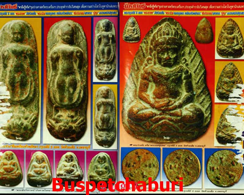 | พระร่วงยืนเหยียบหัวจ้าวพยัคฆาเนื้อดิน กรุกรุเจดีย์5ยอดวัดห้วยเสือเพชรบุรี ปู่ศุขมะขามเฒ่าปลุกเสก (พิมพ์พิเศษ เครื่องทรงเต็มยศ หายากมากๆครับนานๆจะเจอซักองค์) กรุแตก!! ปี 2515 วัดห้วยเสือ จังหวัดเพชรบุรี เป็นวัดโบราณสมัยกรุงศรีอยุธยา ปัจจุบันอยู่ในเขต อ.บ้านลาด จ.เพชรบุรี ในอดีตถือเป็นถิ่นกบดานของเสือร้าย เป็น อำเภอคนดุ แต่ใจถึงไม่กลัวใคร วัดห้วยเสือได้ชำรุดทรุดโทรมไปตามกาลเวลา จนถึง พ.ศ. 2462 พระยานิติธรรมธาดา มหาดเล็กในพระบาทสมเด็จพระจุลจอมเกล้าเจ้าอยู่หัว รัชกาลที่ 5 ได้เข้ามาทำการบูรณะปฎิสังขรณ์ จนแล้วเสร็จในปี พ.ศ.2464 ท่านได้สร้างเจดีย์ใหญ่ ห้ายอดขึ้น เพื่อทำการบรรจุพระบรมสารีริกธาตุ ในการนี้ท่านได้สร้างพระเครื่องขึ้นเพื่อบรรจุภายในเจดีย์ ห้ายอดเพื่อเป็นพุทธบูชา ด้วยเหตุที่พระยานิติธรรมธาดา ท่านมีความนับถือใน หลวงปู่สุข วัดปากคลองมะขามเฒ่า พระที่ท่านสร้างขึ้นได้นำไปขอบารมีหลวงปู่สุข ปลุกเสก ก่อนนำมาบรรจุที่เจดีย์ห้ายอดทั้งหมด จากการสอบถามจากเซี่ยนเก่าเพชรบุรี นอกจากพิมพ์พระร่วงเหยียบหัวจ้าพยัคฆา พิมพ์สังกัจจายน์ พิมพ์งบน้ำอ้อย ที่ได้สร้างขึ้นพร้อมกัน หลวงปู่สุข วัดปากคลองมะขามเฒ่า ปลุกเสกสามารถใช้แทนพระหลวงปู่สุข ที่ออกวัดปากคลองมะขามเฒ่าได้อย่างสบาย แถมพระกรุวัดห้วยเสือ มีเอกลักษณ์ที่ชัดเจนในพิมพ์ทรง เล่นหาได้ง่ายมากหลายพิมพ์ อาทิ พระร่วงเหยียบหัวจ้าพยัคฆา พิมพ์สังกัจจายน์ งบน้ำอ้อย เนื้อดินพิมพ์นี้หายากครับ นานๆจะมีให้เห็นครับ องค์ซ้ายเนื้อออก วาระแดง องค์ขวาเนื้อออก วาระเทาครับ |
