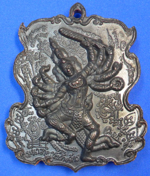 เหรียญหล่อรูปเหมือน หลวงปู่กาหลง หลังพระนารายณ์ขว้างจักร เนื้อสัมฤทธิ์ขอมโบราณผิวไฟ