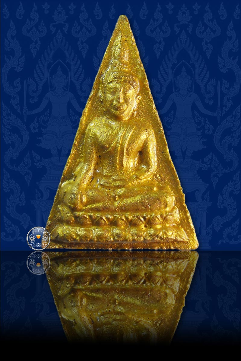 พระนางพญา เนื้อผงพุทธคุณ (รุ่นแรก) หน้าทองทาชแล็ค หลวงพ่อเมี้ยน วัดโพธิ์กบเจา ปี 2528
