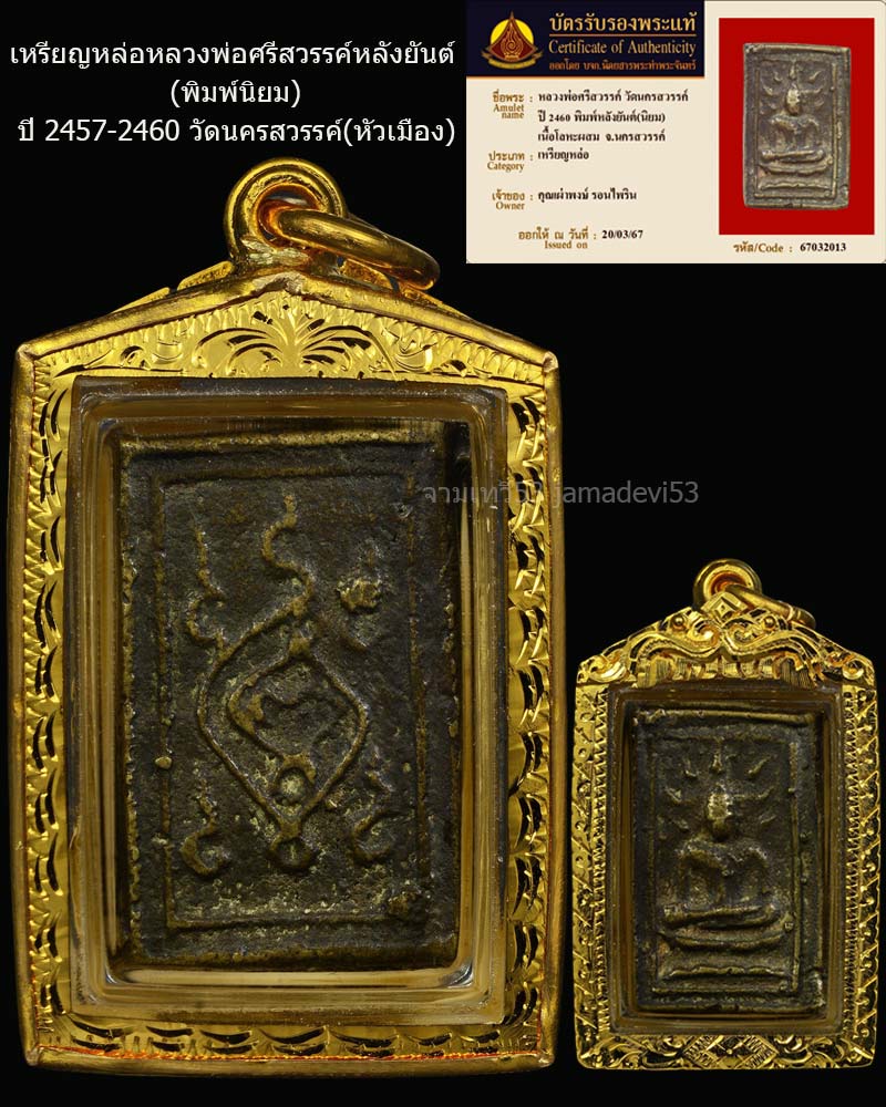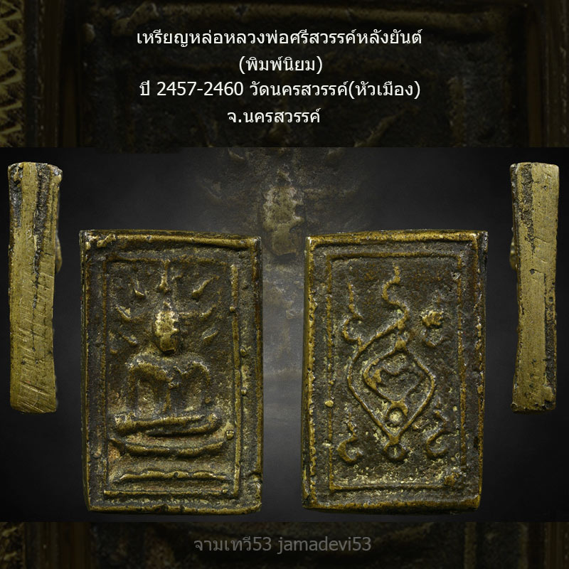 | ชื่อพระเครื่อง | เหรียญหล่อหลวงพ่อศรีสวรรค์หลังยันต์ ปี2460 |