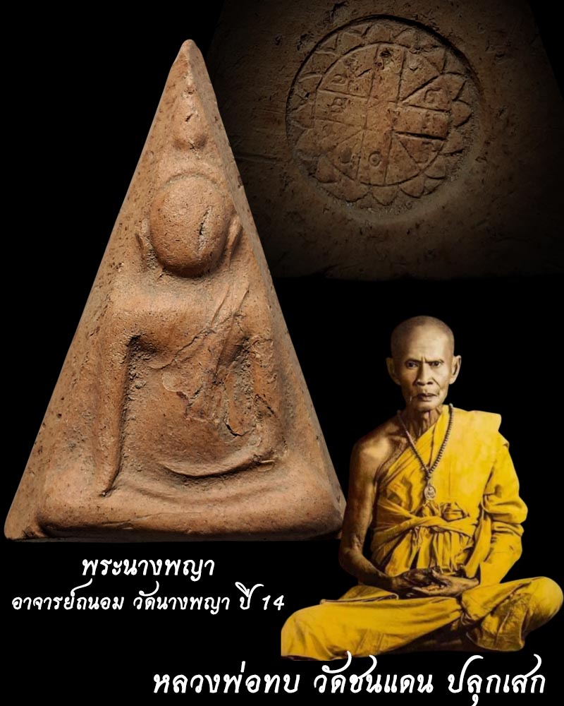 เนื้อดำหายากครับ พระผงรูปเหมือน พระอาจารย์ทองเฒ่า สำนักเขาอ้อ ปี 2511 พระทำจากเนื้อว่านยา 108 ชนิด ผงเลขยันต์ตำราวัดเขาอ้อ 108 ดวง เป็นพิมพ์พระรูปเหมือน"อาจารย์ทองเฒ่า" ปรมาจารย์ใหญ่เขาอ้อ สร้างที่วัดบ้านสวน ทำพร้อมปิดตานอโม พระอาจารย์ รวม 108 อาจารย์ เชิญวิญญาณอาจารย์สมภารนอโมและวิญญาณอาจารย์เฒ่า เข้าประทับทรงปลุกเศก เกิดเป็นตัวต่อจำนวน 1,000 ตัว มาปิดรอบปริมณฑลพิธี มีความอัศจรรย์อย่างที่ไม่เคยพบเห็นมาก่อน พิธีวันที่ 12 มีนาคม 2510 ปลุกเศกอยู่ 33 วัน แล้วนำพระส่วนหนึ่งไปเข้าพิธีที่วัดถ้ำเขาเงินในปีต่อมา เมื่อ 8 กุมภาพันธ์ 2511 ทำพิธีเสด็จกลับระหว่างวันที่ 12-16 มีนาคม ปี 2511 เท่ากับว่าพระที่มีคราบ คือพระที่ผ่านพิธีหลายพิธี พระมีขนาดเล็ก 1.5 X 2.1 c.m. ผิวคราบสีขาวเหลือง เนื้อในสีน้ำตาลม่วง คราบที่เกิดขึ้นบนผิวเกิดจากการนำพระไปทำพิธีปล่อยในทะเลแล้วให้เสด็จกลับมาเองปี 2511 (ทำแบบเดียวกับของปี 06) กล่าวถึงพิธีพุทธาภิเศกที่วัดถ้ำเขาเงิน ชุมพร เมื่อ 8 กุมภาพันธ์ ปี 2511 เป็นพิธีใหญ่ที่รวมศิษย์สายเขาอ้อร่วมกันปลุกเสก ขุนพันธ์ฯเป็นประธานจัดสร้าง อ.ชุมและหลวงพ่อคล้อย วัดถ้ำเขาเงิน ร่วมกันสร้างเพื่อแจกจ่ายทหาร ตำรวจ ประชาชนที่ศรัทธา พระอาจารย์นำ ชินวโร วัดดอนศาลา จ.พัทลุง, หลวงพ่อคง วัดบ้านสวน จ.พัทลุง, พระอาจารย์ปาล วัดเขาอ้อ, หลวงปู่หมุน วัดเขาแดงตะวันออก จ.พัทลุง, พระครูปลัดพวง วัดประสาทนิกร หลังสวน จ.ชุมพร, หลวงพ่อคล้อย วัดถ้ำเขาเงิน หลังสวน จ.ชุมพร, อาจารย์ชุม ไชยคีรี เขาไชยสน จ.พัทลุง ปลุกเสกตามตำรับไสยเวทย์ของเขาอ้อ จึงเป็นที่มั่นใจได้ว่าใช้บูชาดีเด่นในทุกทาง |