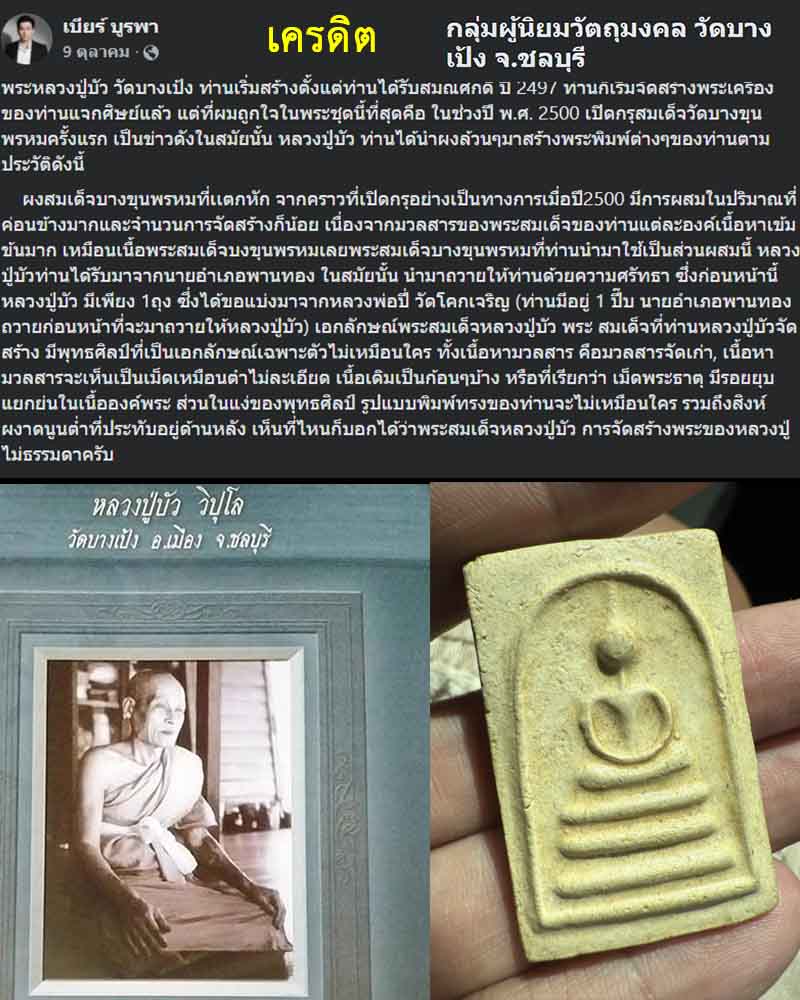 พระสมเด็จหลวงพ่อหลาบ วัดบางเป้ง พิมพ์ หลังรูปเหมือน จ.ชลบุรี