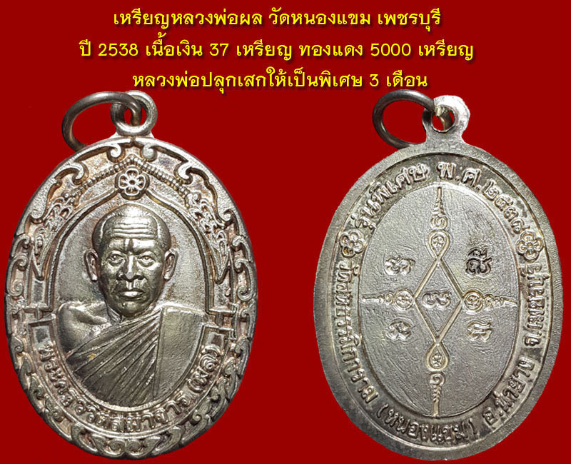 | ชื่อพระเครื่อง | เหรียญ หลวงพ่อผล วัดหนองแขม ปี 2538 เนื้อเงิน |