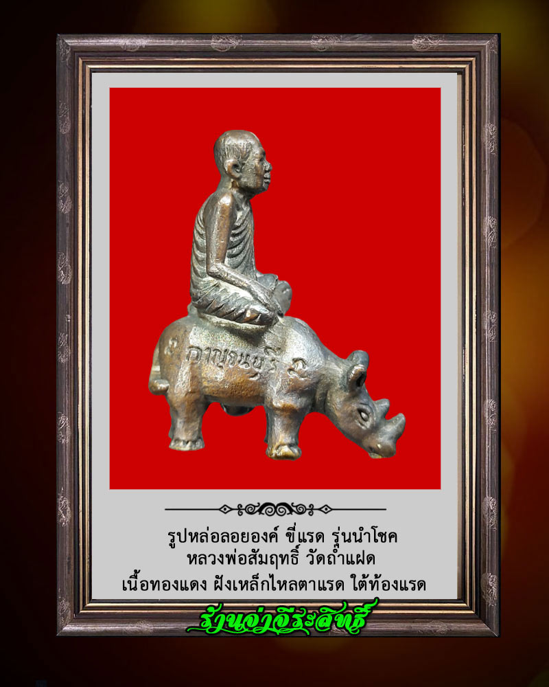 รูปหล่อ ขี่แรด หลวงพ่อสัมฤทธิ์ วัดถ้ำแฝด ฝังเหล็กไหลตาแรด
