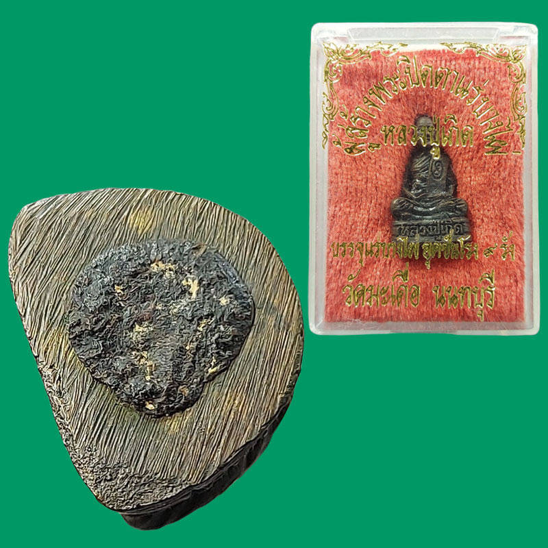 | ปิดท้าย รูปหล่อหลวงปู่เกิด วัดมะเดื่อ จ.นนทบุรี ใต้ฐาน อุดแร่บางบางไผ่ ปิดทับด้วย ชันโรง 9 รัง สวยเดิม ๆ |