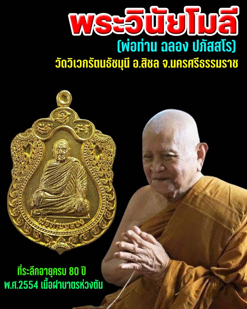 | เหรียญพ่อท่านฉลอง วัดวิเวกรัตนธัชมุนี สิชล พระเถระชั้นผู้ใหญ่ เหรียญเสมา ที่ระลึก อายุ 80 ปี พ.ศ.2554 เนื้อฝาบาตร ห่วงตัน นิยม |