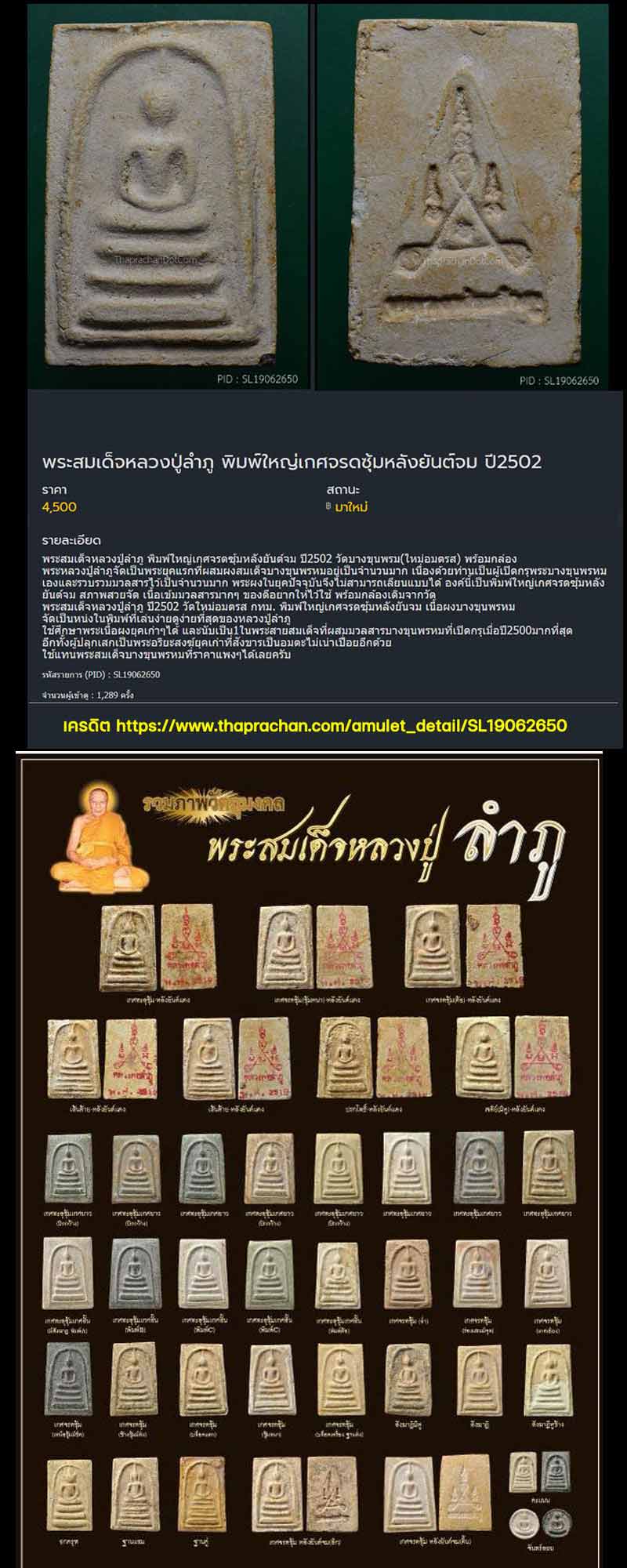 | พระสมเด็จหลวงปู่ลำภู พิมพ์ใหญ่เกศจรดซุ้มหลังยันต์จม ปี2502 สวยเดิม ท่าพระจันทร์ 4,500 บาท https://www.thaprachan.com/amulet_detail/SL19062650 เว็ปพระ 4,500 บาท https://www.web-pra.com/shop/sinlapasongpra/show/1224352 ผสมผงเก่า มากกว่า สร้างก่อน บางขุนพรหม ปี 09 ที่แพงๆๆๆๆ ไม่ต้อง กลัวเก๊นะครับ พระองค์นี้ ...ได้มาในกล่องแจกกรรมการ ในวาระ ที่ทางวัดชัยพฤกมาลา จัดงาน แจกเป็นที่ระลึก โดยเสด็จพระกุศล ใส่ตลับพุก ขึ้นคอได้.... |