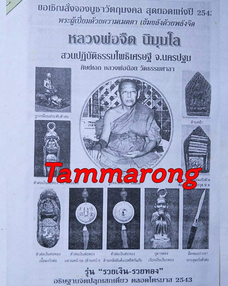 | พญาต่อเงินต่อทองลอยองค์ รุ่นแรก ปี 2543 เนื้อผงรังต่อล้วน เนื้อผง หายาก ครับ นาน ๆ จะเจอ สายตรง ท่านว่าไว้ https://petchnummon.com/view-408.html หลวงพ่อจืด ท่านได้รับการถ่ายทอดวิชาจากหลวงพ่อน้อย วัดศรีษะทอง และ หลวงพ่อน้อย วัดธรรมศาลา ในระหว่างธุดงค์ทั่วแดนไทยท่านได้แลกเปลี่ยนวิชากับพระสหายสหธรรมิกชาวเขมร คือวิชาปลุกเสกใบไม่ให้เป็นตัวต่อตัวแตน มีพุทธคุณด้านเมตตา โชคลาภ ค้าขาย มีฤทธิ์เดช 108 ประการ จะสังเกตุได้ว่า ไม่ว่าหลวงพ่อจืดจะอยู่กุฎิหลังไหน จะมีตัวต่อไปทำรังที่นั่น หรือว่าท่านทำพิธีปลุกเสกตัวต่อแต่ละครั้งจะมีตัวต่อจำนวนมากบินไปมาใกล้ๆประรำพิธี ที่แปลกอีกอย่างคือตัวต่อจะไม่ทำร้ายใคร เสมือนว่าท่านได้ทำพิธีเรียกหัวใจพญาต่อเข้าสู่วัตถุมงคลนั่นเอง รายการที่ลงนี้เป็นพญาต่อเงินต่อทอง รุ่นแรก ปี 2543 ด้านหลังอุดผงรังต่อและเส้นเกศา เนื้อทองระฆังสภาพสวยมาก ไม่ผ่านการใช้แขวนบูชา รุ่นนี้มีประสบการณ์ทางด้านเมตตา ค้าขาย โชคลาภ หนุนเงินหนุนทอง น่าใข้แขวนบูชาครับ และหายากมากๆครับ แบบมีห่วงเนื้อทองระฆังสร้างจำนวน 1,000 ตัว เนื้อตะกั่วอวนสร้าง 600ตัว แบบไม่มีห่วง(ทำบุญผ้าป่า) สร้าง 2,000 ตัว "หลวงพ่อจืด นิมฺมโล"เทพเจ้าพญาต่อเงินต่อทอง เจ้าอาวาสวัดโพธิ์เศรษฐีวนาราม แห่งนครปฐม ลูกศิษย์สายหลวงพ่อน้อย วัดศรีษะทอง และวัดธรรมศาลา มรณภาพแล้ว ด้วยโรคชรา เมื่อวันที่ 8 มิถุนายน 2559 เวลา 21.21 น. ที่วัดโพธิ์เศรษฐีวนาราม ต.บ่อพลับ อ.เมือง จ.นครปฐม รวมสิริอายุ 78 ปี 58 พรรษาขณะนี้สังขารตั้งสวดพระอภิธรรมอยู่ที่วัด กล่าวสำหรับ หลวงพ่อจืด นิมฺมโล วัดโพธิ์เศรษฐีวนาราม ตำบลบ่อพลับ อำเภอเมือง จังหวัดนครปฐม ท่านเป็นพระเกจิอาจารย์ชื่อดัง ผู้สืบทอดมหาพุทธาคมสายตรงจากหลวงพ่อน้อย วัดธรรมศาลา และสืบทอดตำรับวิทยาคมหลวงพ่อน้อย วัดศีรษะทอง หลวงพ่อศุข วัดปากคลองมะขามเฒ่า ปัจจุบันวัตถุมงคลของหลวงพ่อจืด เป็นที่นิยมในหมู่นักสะสมทั้งชาวไทยและชาวต่างชาติ อาทิ ตะกรุดโทน ตะกรุดมหาลาภ เหรียญรูปเหมือน พระปิดตา พระราหูกะลาตาเดียว พญาต่อเงินต่อทอง และเป็นที่กล่าวขานเรื่องของประสบการณ์น้ำมนต์ศักดิ์สิทธิ์ของหลวงพ่อจืดได้อาบน้ำมนต์ หรือได้รับการประพรมน้ำมนต์จากท่านจะได้รับพลังฤทธิ์อำนาจของมหาอาคมตามตำรับบูรพาจารย์ ขับไล่อาถรรพณ์จัญไร คุณไสยทั้งปวงสะเดาะเคราะห์ ปัดเคราะห์ เสริมสิริมงคล ทำมาค้าขึ้นเจริญรุ่งเรืองในหน้าที่การงานและถ้าได้ลงนะมหาเศรษฐี นะขุนแผน นะเมตตามหานิยม นะมหาโชคมหาลาภ นะขุนแผน นะหน้าทอง พิธีบูชาเทวดาเสริมดวง(เฉพาะวันเสาร์) เป่ามนต์แม