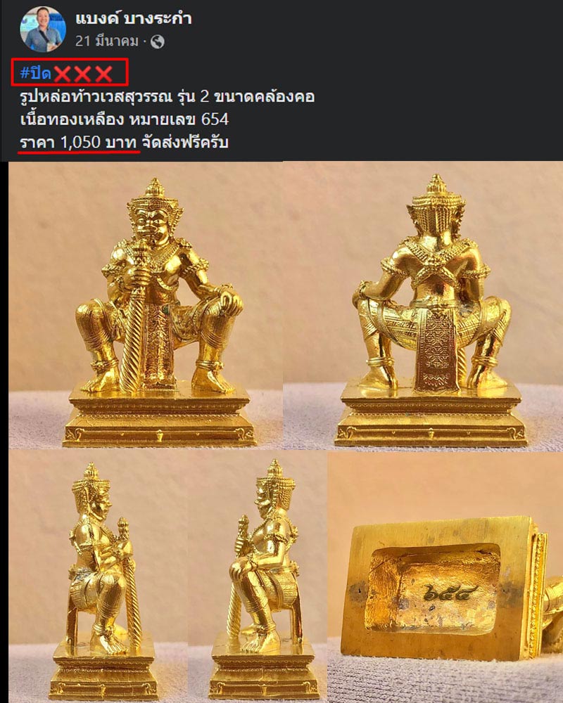 | “ท้าวเวสสุวรรณ” แห่งองค์พระพุทธชินราช หนึ่งเดียวในไทย ท้าวเวสสุวรรณ รุ่น 2 เรียกกันว่า รุ่นวัดแตก พิธีมหาพุทธาภิเษก 2วัน วันที่ 4~5 เมษายน 2565 โดยพระเกจิอาจารย์ 119 รูป ของดี ของขลัง ของวัดใหญ่พิษณุโลก ที่ควรแสวงหามาบูชาครับ สวยมาก ครับ ผมถ่ายรูป ไม่ค่อยด |