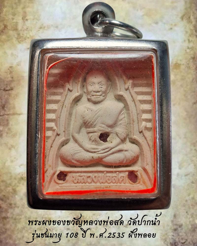 | พระสมเด็จเก้าชั้น ข้างอุ แขนกลม หลวงปู่ลำภู วัดใหม่อมตรส ปี 2531 สวยเดิม กล่องเดิม |