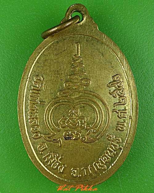 | พระครูกาญจนสีลาภรณ์ (หลี สีลเตโช) วัดแก่งหลวง ต.เกาะสำโรง อ.เมือง จ.กาญจนบุรี หลังยันต์ เนื้อทองฝาบาตร ปี 2542 |