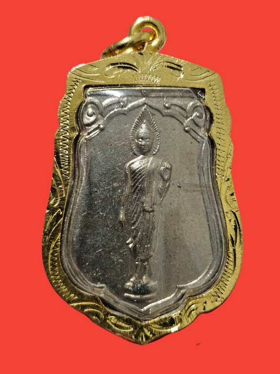 พระ 25 พุทธศตวรรษ เนื้อชิน พิมพ์ตาตุ่ม เลี่ยมเงินจำปาเล็ก