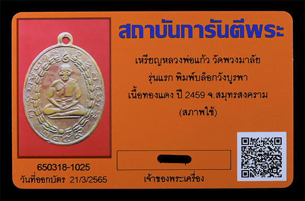 | เหรียญหลวงพ่อแก้ว วัดพวงมาลัย บล็อกวังบูรพา ปี2459 |