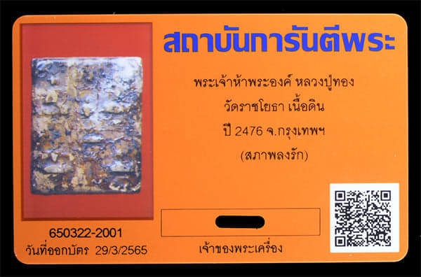 | ชื่อพระเครื่อง | พระเจ้าห้าพระองค์ หลวงปู่ทอง วัดราชโยธา พิมพ์เล็ก ลงรักเก่า |