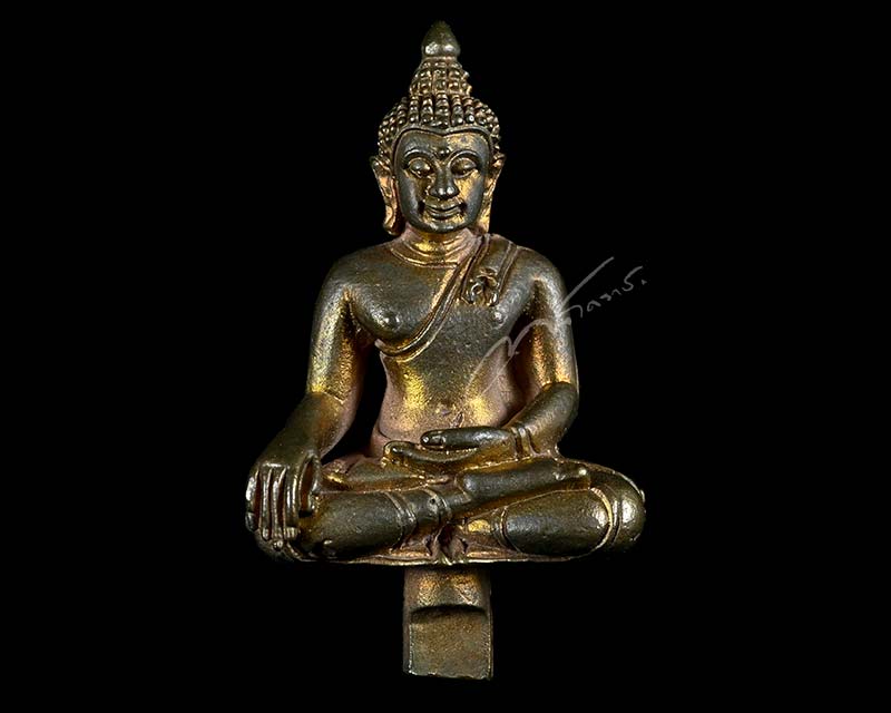 | พระยอดธงรุ่นแรก "เนื้อเงิน" หลวงปู่ธรรมรังษี วัดพระพุทธบาทเขาพนมดิน จังหวัดสุรินทร์ - หมายเลข ๑๖๒ - เนื้อเงิน จารมือ - กล่องเดิม |