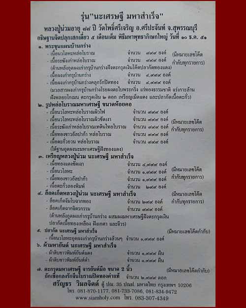 - เหรียญหลวงพ่อน่วม วัดโพธิ์ศรีเจริญ จ.สุพรรณบุรี รุ่น"นะเศรษฐี มหาสำเร็จ" ปลุกเสกไตรมาส๕๑ เนื้อทองแดง