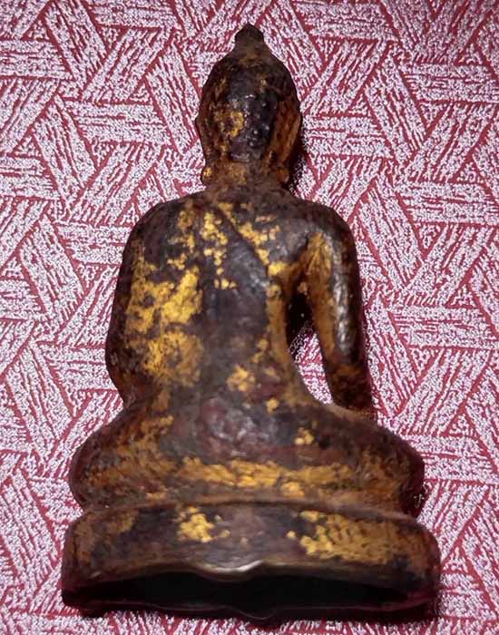 - พระพุทธรูปบูชาสุโขทัย ลงรักปิดทองเก่า หน้าตัก 3 ซ.ม. สูง 4 ซ.ม. เนื้อสำฤทธิ์ ปางมารวิไชย